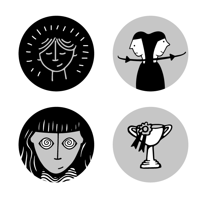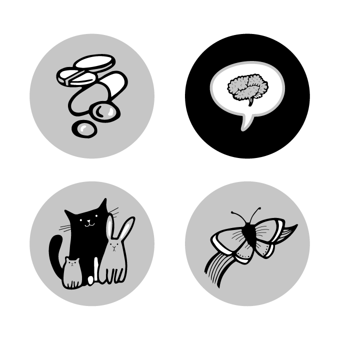 The illustrations were commissioned in black and white out of budgetary necessity, but I created a colour palette for my favourites for this portfolio. All the original illustrations in black and white are below.