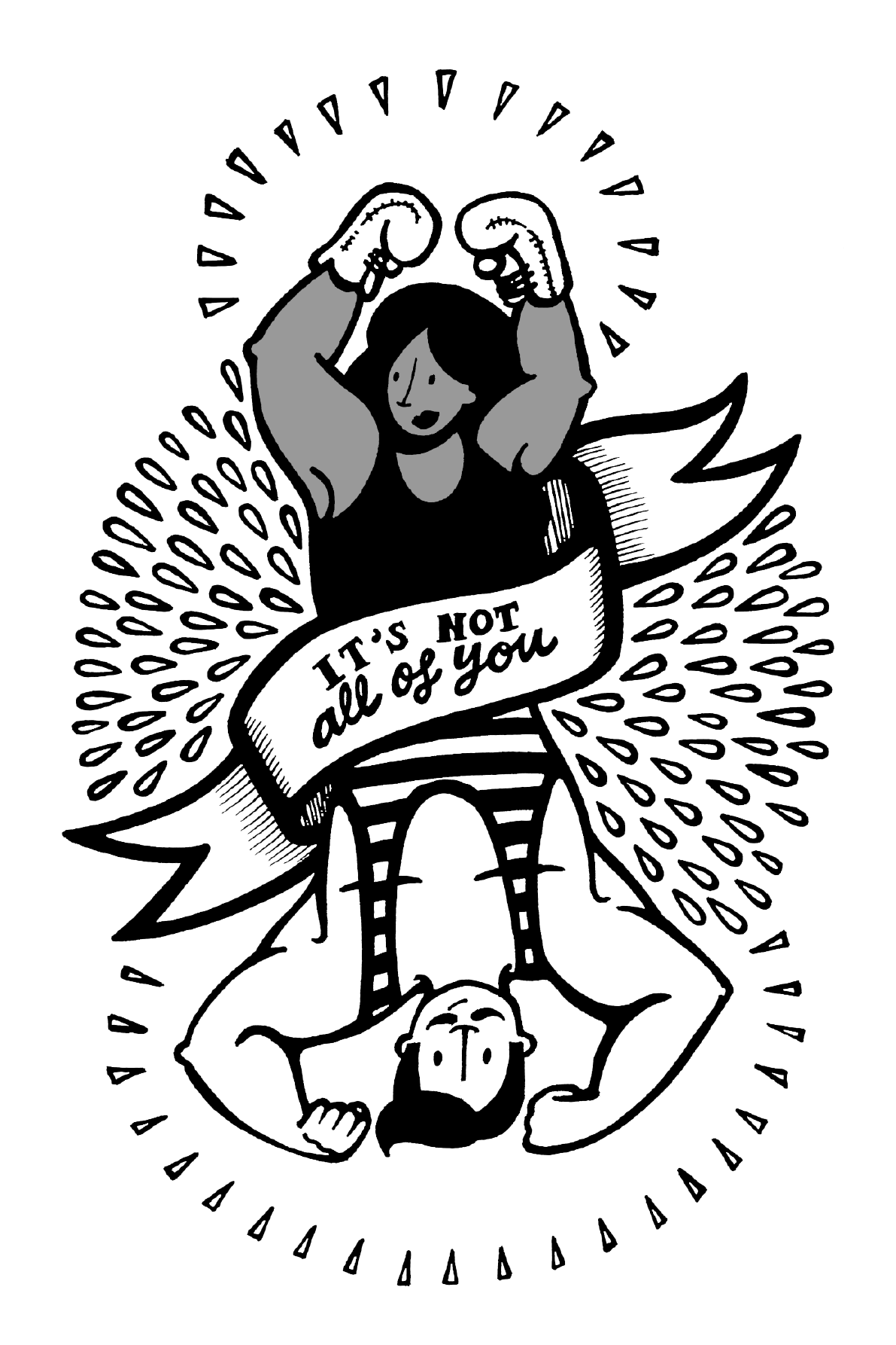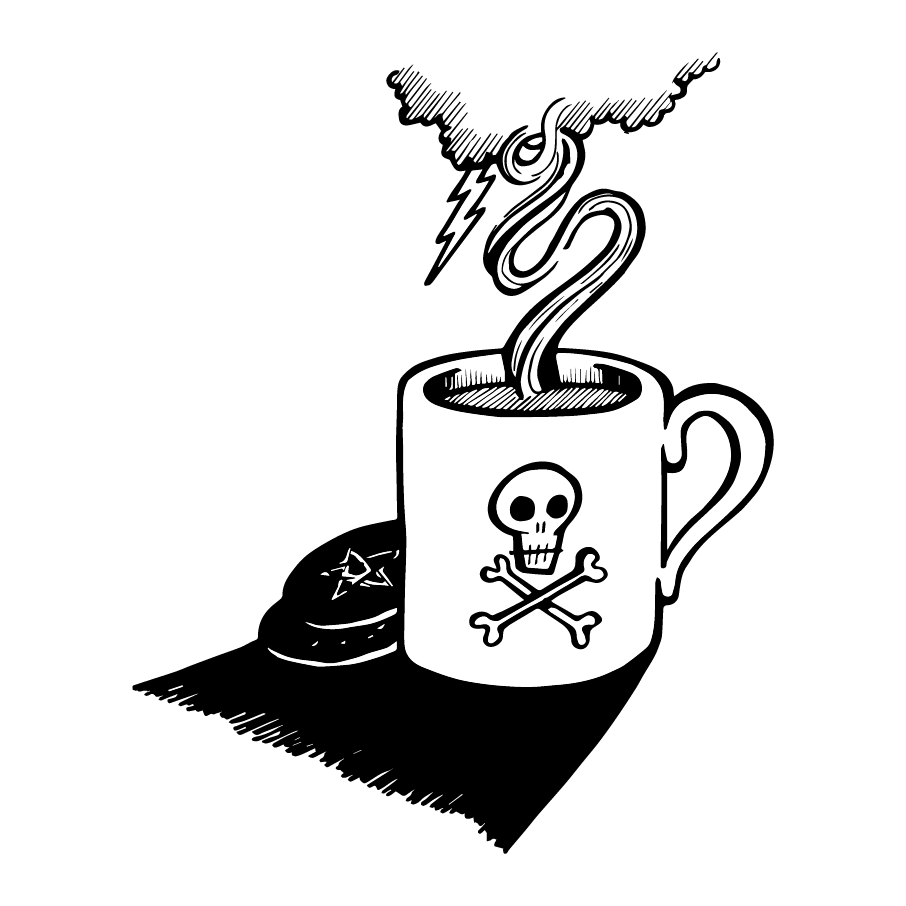A mixture of pen and ink and digital illustration commissioned in black and white.